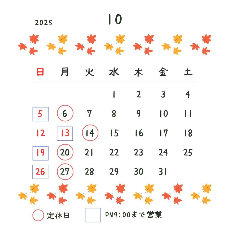 【お知らせ】 10月の営業カレンダー